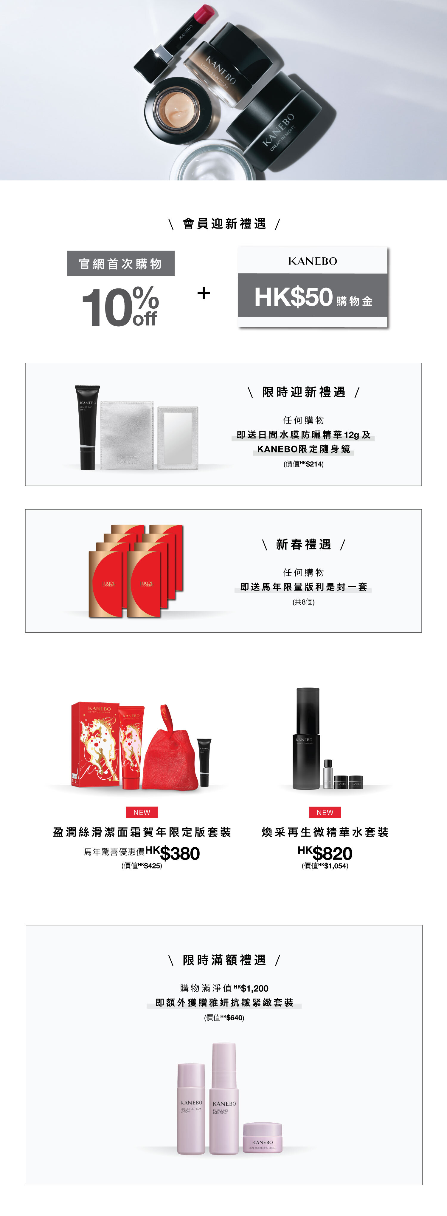 凡登記成為網店會員,首次購物即享9折,並額外獲贈指定迎新禮遇及HK$50購物金